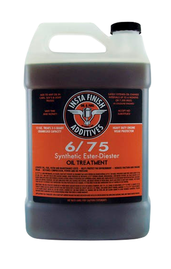 Insta Finish 6/75 Ester-Diester Oil Treatment extends oil change intervals up to 6 months or 7,500 miles while enhancing engine performance and longevity. Suitable for all vehicle types.